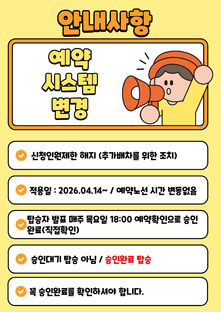 • 운행방법 : 회차별 1대 운영 (교통량에 따라 도착 시간이 변경될 수 있습니다.)