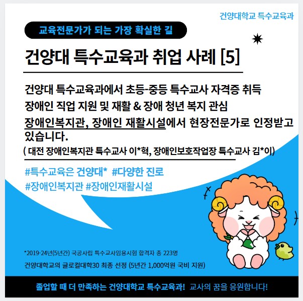 | 제목 | 건양대 특수교육과를 졸업하면 어떤 일을 하고 있는지 취업 사례를 통해 알려드릴게요. | ||||