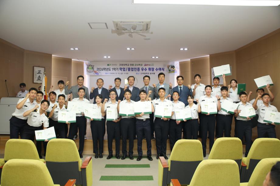 2024학년도 1학기 학업/졸업인증 우수 휘장 수여식 - 일시 : 2024.09.13(금) 11:00 - 장소 : 산학협력관 충무홀 우수휘장 및 각 분야별 모범상 수상자에 대한 휘장 및 장학금 수여식