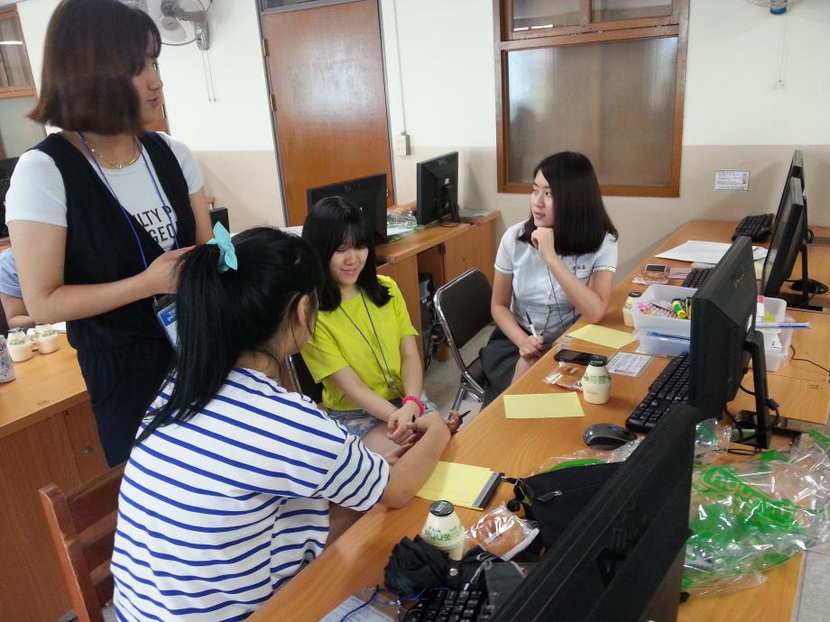 7.13(토) 고등학생 대상 진로체험캠프가 있었습니다 ^^ 저희학과에서는 `힐링디자인 Talk`라는 주제로 진행 되었습니다~ 치과를 대상으로 공간설계를 해보는 시간이었는데요 ^^ 우리친구들 매우 열심히 해줬고 즐거운 시간이었습니다~ 사진찍는게.. 부끄러웠나봐요 ㅎㅎ 2학년 김보람 선배가 친절히(?) 도와주는중!! 멘토짱 선배짱