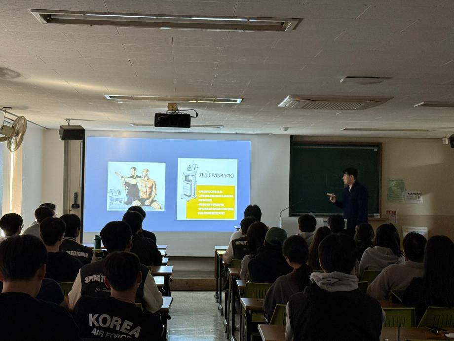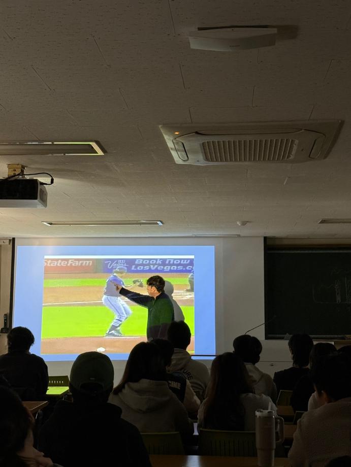 [졸업생 특강(54K sports 야구 트레이닝 센터)] 2024년도 11월11일 현재는 54K sports 야구 트레이닝 센터에서 근무 중인 17학번 김*우 졸업생의 특강을 진행하였습니다. |