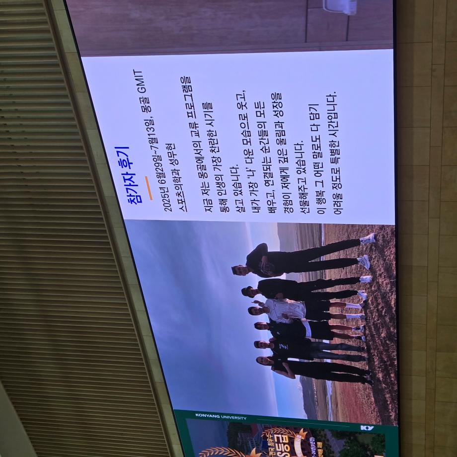 이번 몽골 교류 프로그램은 다양한 경험을 해보며 소통 능력을 향상시키고 자신의 과에 대한 자부심과 진로에 대한 확신을 얻게 되는 소중한 기회를 얻게 되는 시간이였습니다 ? |