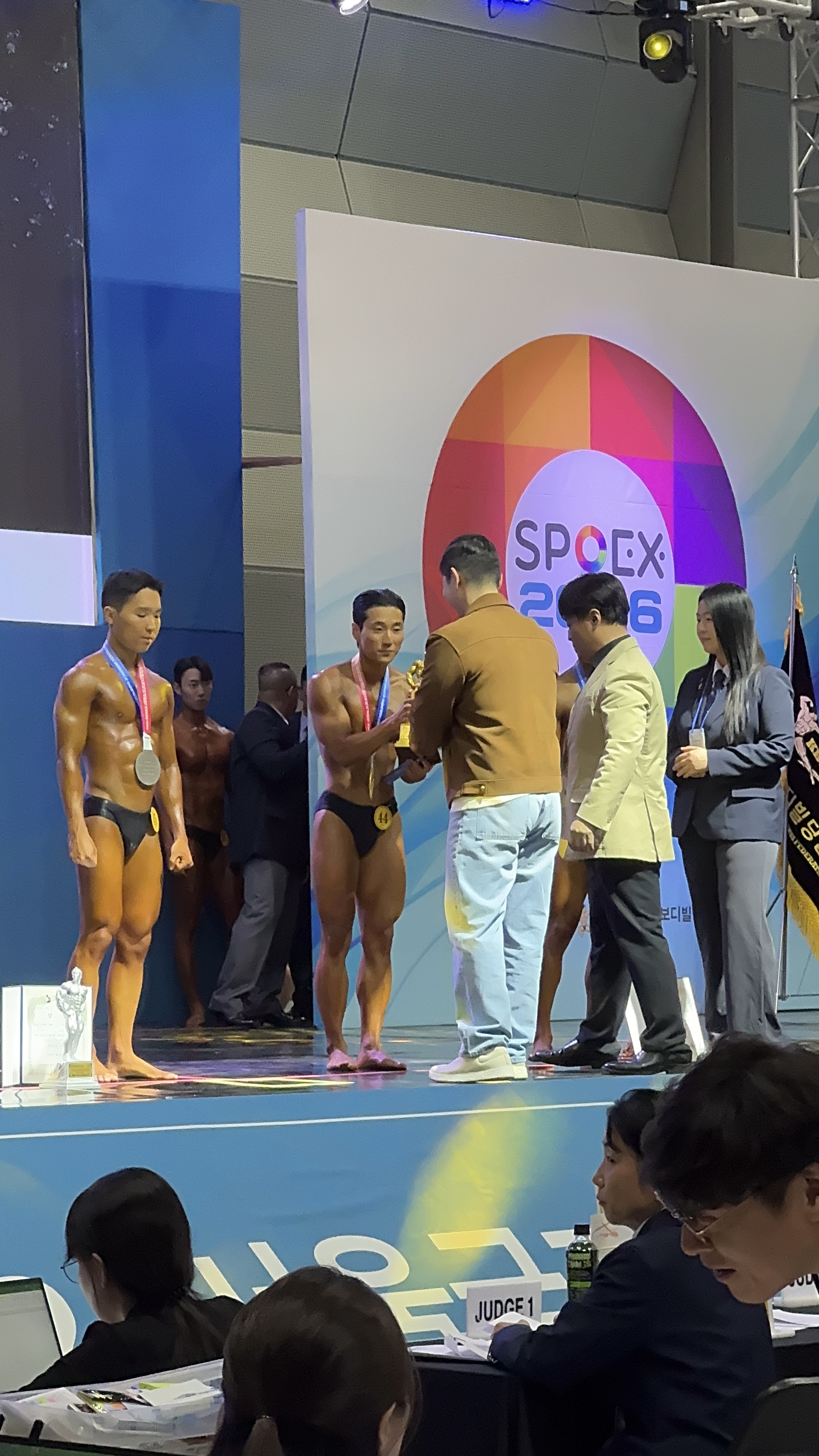 보디빌딩대회 1등 수상 안녕하세요 건양대학교 스포츠의학과 학생회입니다 대한보디빌딩협회에서 개최한 2026 스포엑스 전국 대학 보디빌딩 대회에서 스포츠의학과의 유호민 학우가 플라이급 1위를 수상하였습니다. 수많은 노력의 시간으로 이뤄낸 값진 결과를 그 누구보다 축하드립니다!