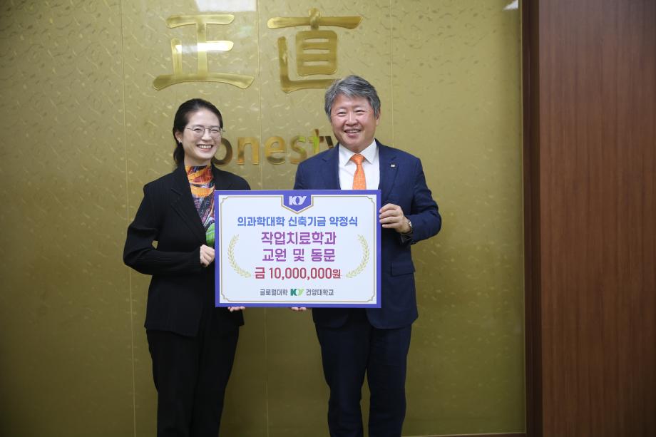 | 제목 | 건양대학교 의과학대학 신축기금 약정식에서 작업치료학과 1천만원 기부금 전달 | ||||
