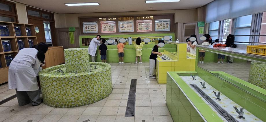3학년 학생들이 2학기 동안 대전 대암초등학교에서 바른 칫솔질 교육 및 불소용약 양치 지도를 하고 있습니다